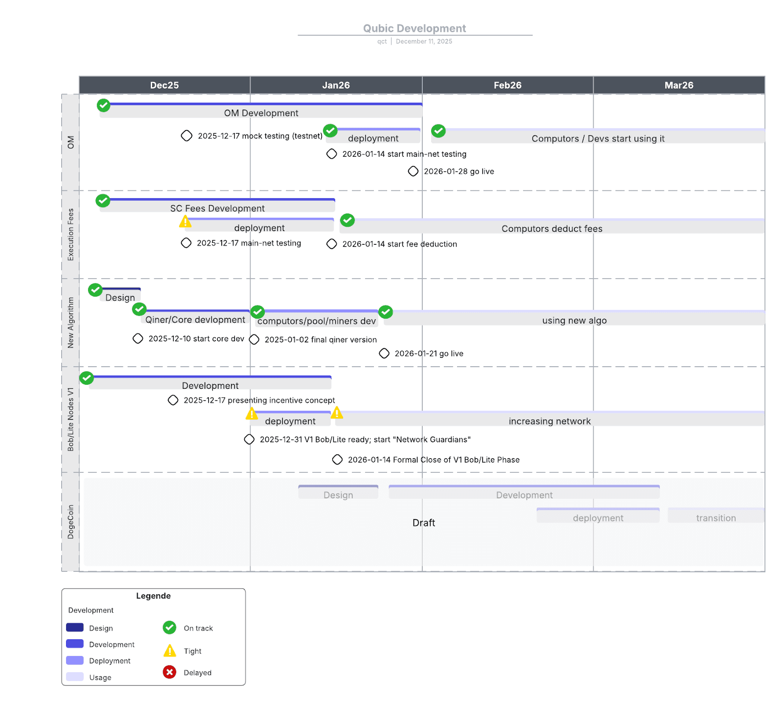 The team shared a detailed timeline stretching from December 2025 through March 2026: