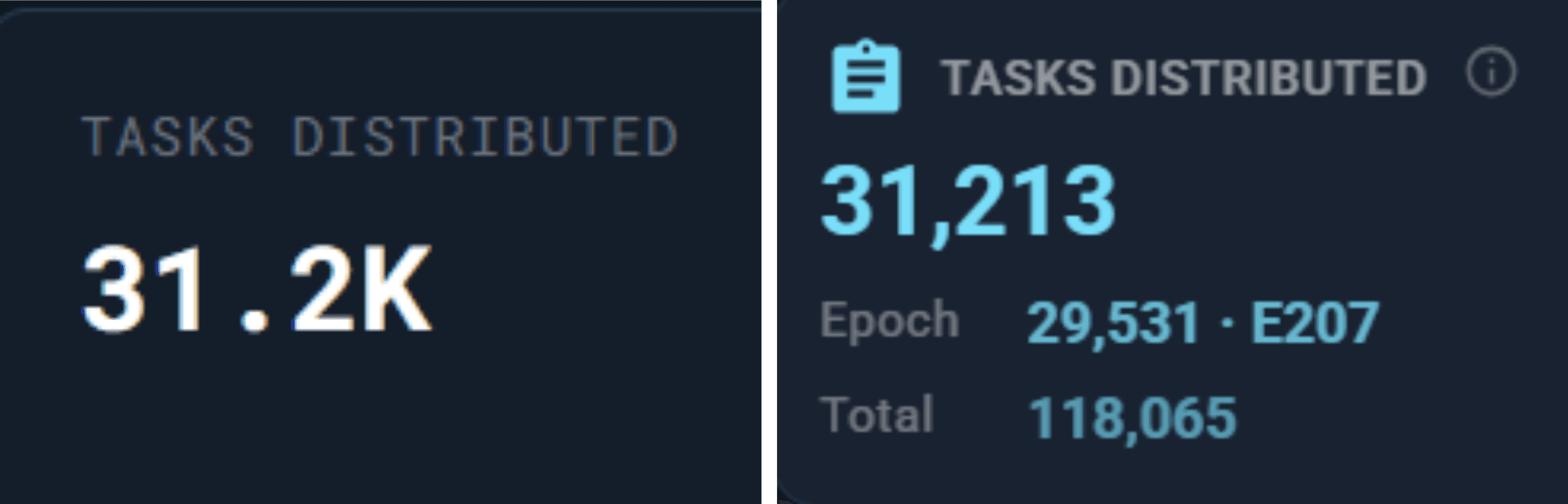 Why it matters: These give you a real-time pulse of network participation. Many computors with few active tasks is normal since tasks cycle quickly.