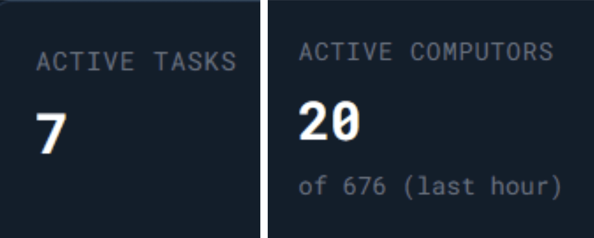 Active Tasks shows how many Dogecoin mining jobs are in progress right now. Active Computors shows how many Qubic computors (out of a maximum 676) participated in DOGE mining in the last hour.
